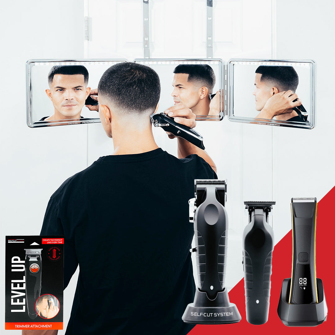 Introducing the Self-Cut System Cordless RAPTOR Clipper, the ultimate grooming tool for men seeking a professional-grade haircut from the comfort of their own home. Designed with the help of professional barbers, this clipper is 100% barber approved and equipped with a high-performance motor that delivers precision cutting for all hair types, making it the perfect tool for at-home haircuts or touch-ups.